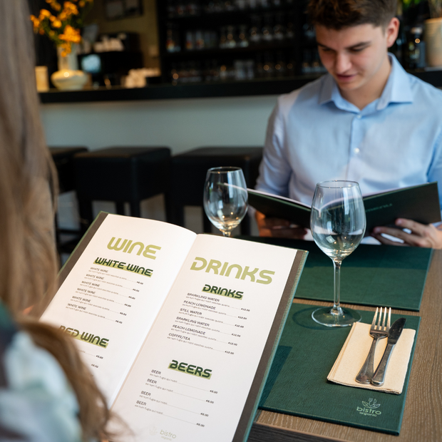 Position your restaurant elegantly and keep it up to date with zero effort. From branded menucards to bill holders and reserved signs, our products are easy to personalise and adjustable in minutes, on site.