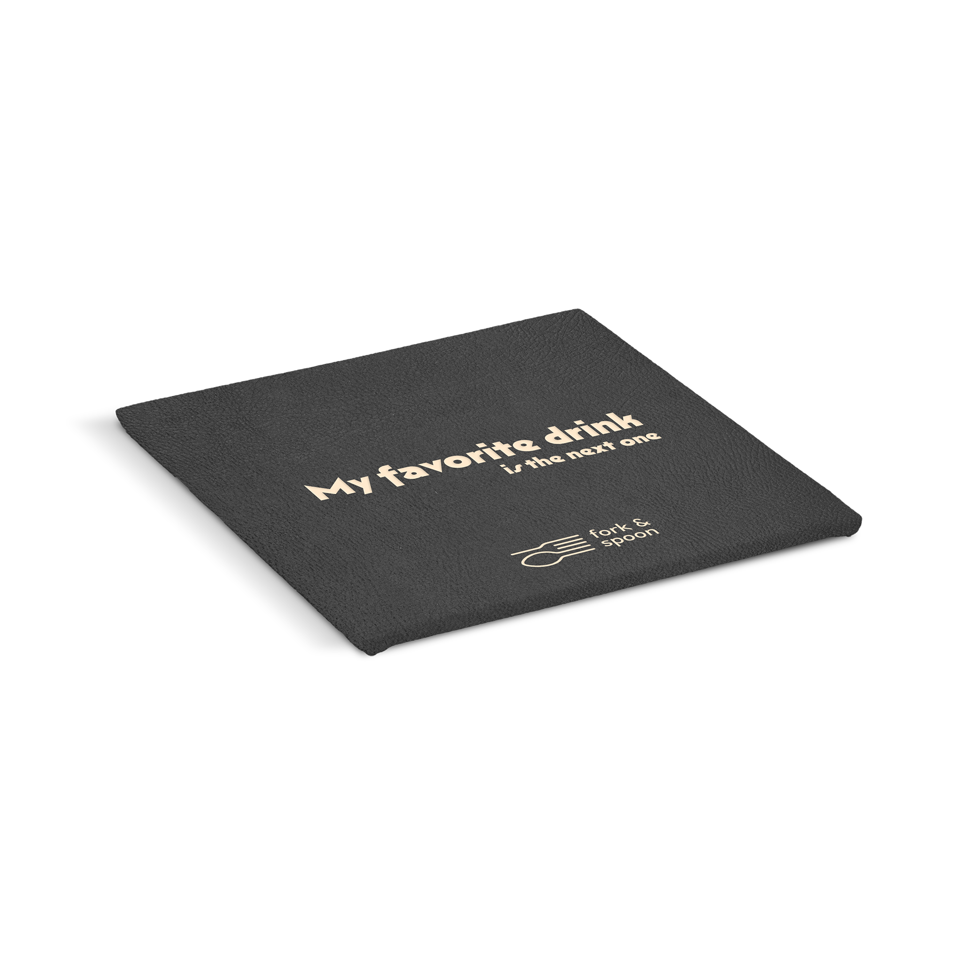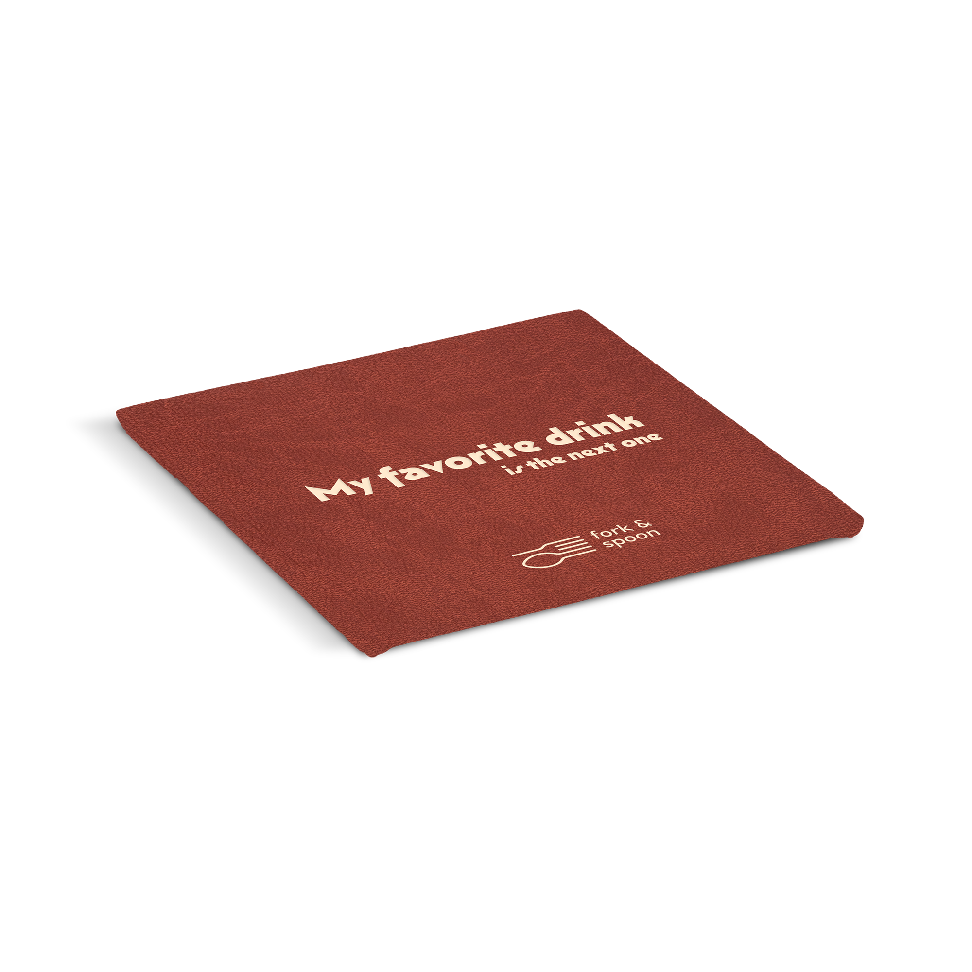 Elevate your table presentation with our stylish square coasters, designed with smooth rounded corners for a premium, modern look. These vegan leather coasters don’t just protect your surfaces—they also serve as compact yet powerful branding tools.